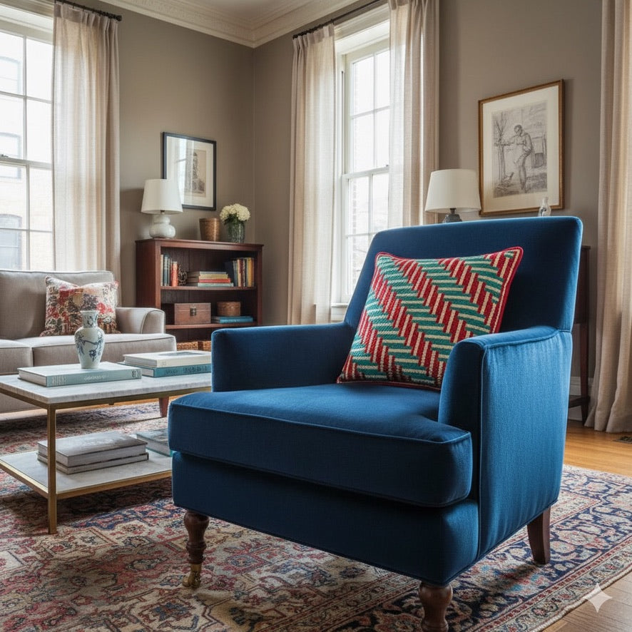 Inspired by tradition, reimagined for today. Our SHAKER TAPE PILLOW is part of the DOF Limited Edition Collection — a bold and thoughtful fusion of 18th-century American craftsmanship and vibrant South Asian embroidery.